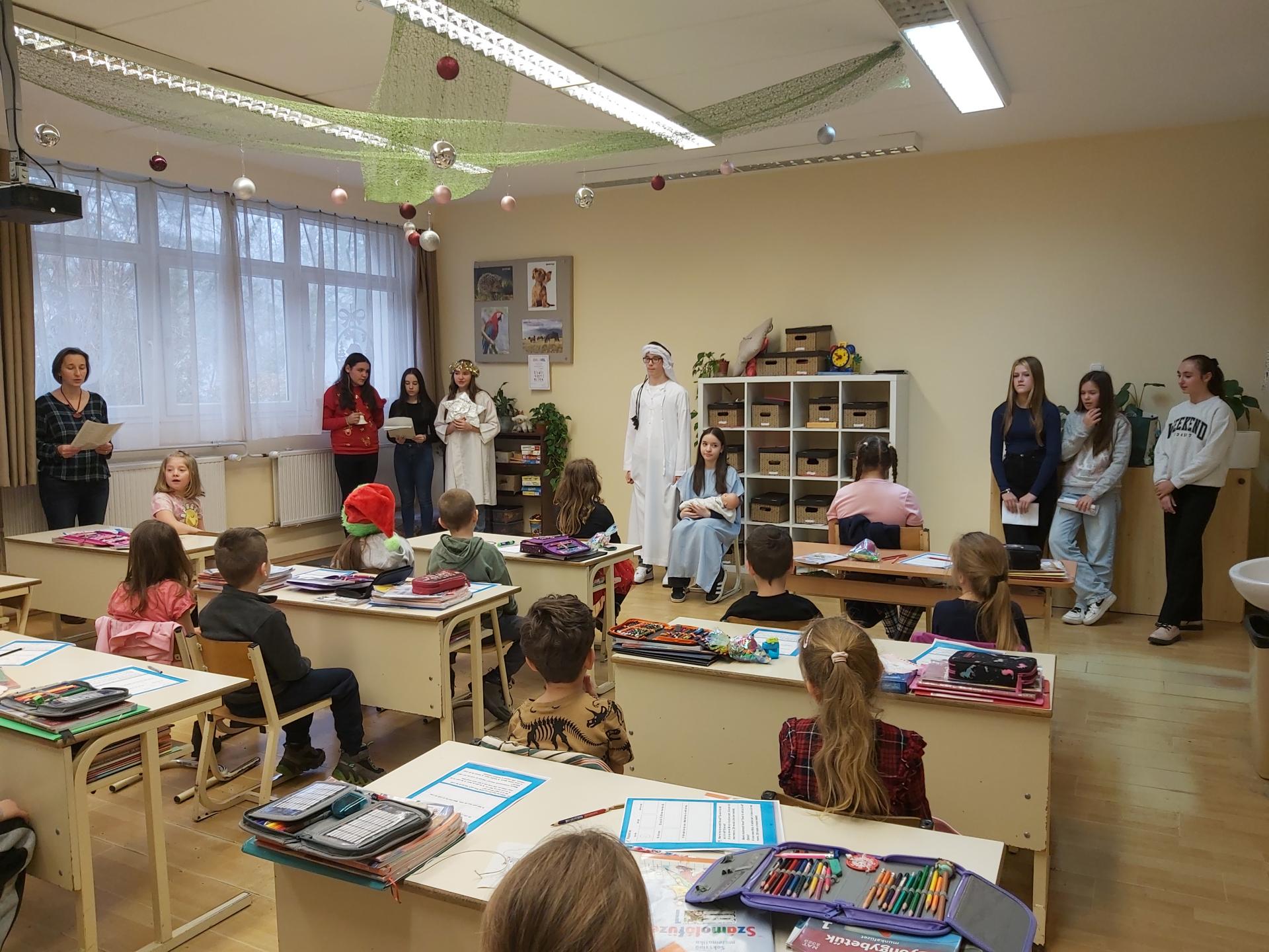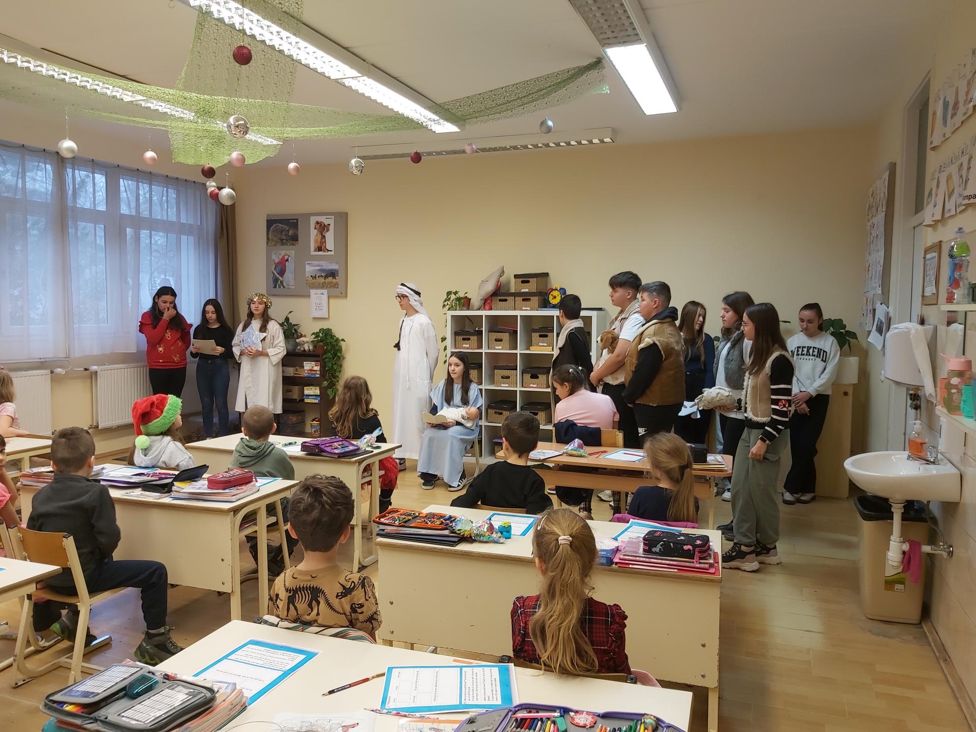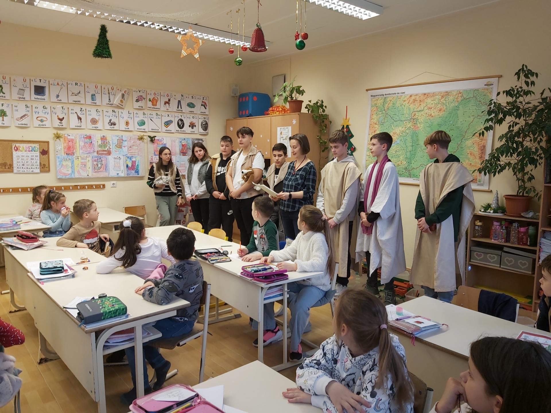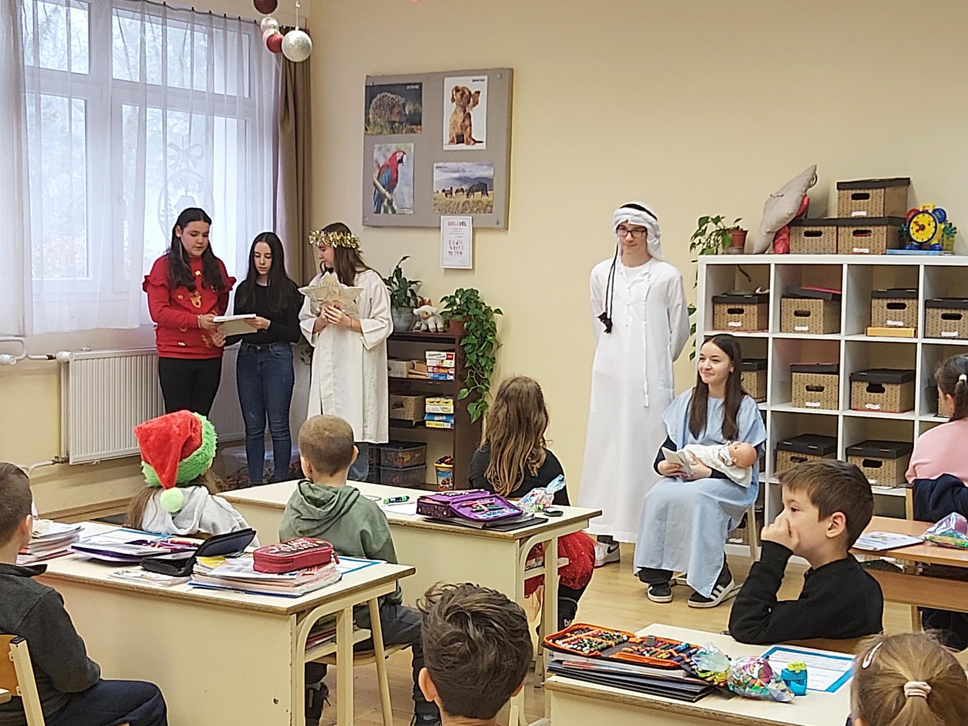 Galéria Pásztorjáték 2025. december 27., szombat @ 09:58 A 7.a osztály hittanosai az 1. osztályos kisdiákokat egy pásztorjátékkal örvendeztették meg az utolsó tanítási napon. Kapcsolódó galéria Pásztorjáték Megosztás